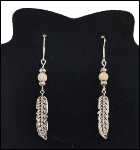 Brinco Paul Western. Banhado no Níquel. Pena com Strass Cristal. Pedra Off White.