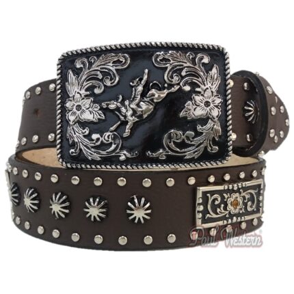 Cinto de Couro Legítimo Paul Western Infantil. Acompanhas charroas e medalhinha nos centros.