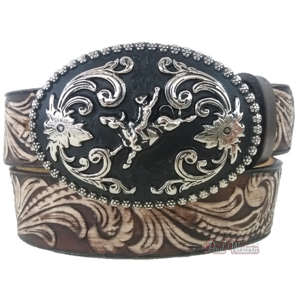 Cinto de Couro Legítimo Paul Western, Infantil, entalhado.