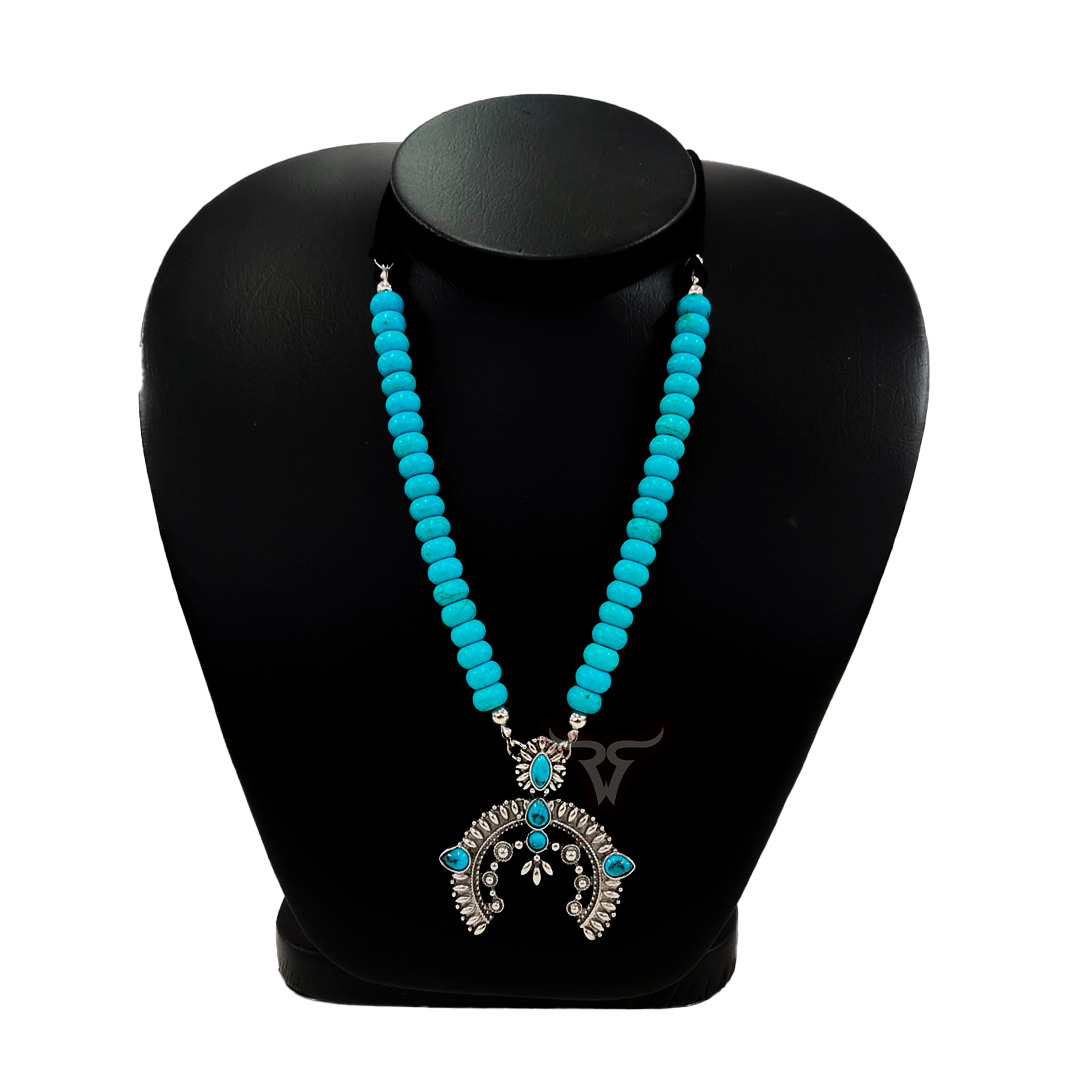 Colar Paul Western. Pedras Azul Turquesa. Peças banhadas no Níquel.