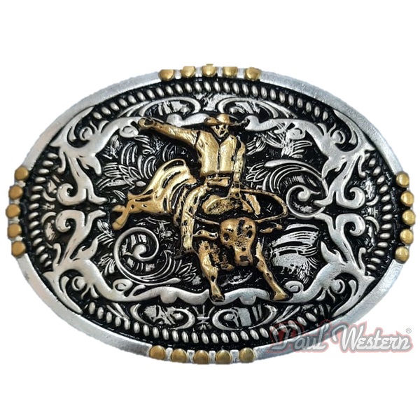Fivela Oval Níquel. Fundo Preto de Detalhes em Dourado.